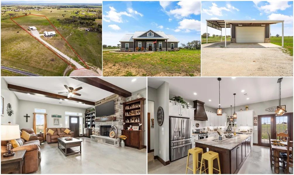 Your serene getaway, located in The Ranches at Bobcat Ridge, beckons you home. This 2022-built gem offers 3 bedrooms, 2 baths on a rich 5-acre panorama. Unique features include a private well, insulated 24x40 shop, & a 16x40 covered RV parking with 50 AMP hookup. Inside, savor the open-concept design, boasting a lavish kitchen with a huge granite island, gas stove, beautiful ventahood, & under-cabinet lighting. The living area offers striking ceiling beams and a grand fireplace coupled with built ins on either side. The primary suite offers tray ceilings and an en-suite with a soaking tub for relaxation & separate shower. Dual vanities & large closet. Dont miss the dream pantry at the end of the hall for all your cooking & storage needs. Outside, enjoy scenic sunsets from your covered porch, perfect for entertaining, with a built-in grill & Blackstone. Recent fencing installed on both si...