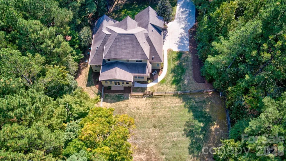 MUST SEE THIS GEM! Exquisite custom 4 bedroom, 3 bath home on 5.38 private, wooded acres with large fenced backyard and No HOA! Ideally situated just 30 minutes from Charlotte, providing access to all the city has to offer. This gorgeous home showcases vaulted ceilings, a large great room, and upscale quality craftsmanship throughout. The open concept floor plan is perfect for entertaining with a spacious sunroom that adds abundant natural light. The amazing gourmet kitchen comes complete with a huge quartz island, quartz countertops, high-end appliances, and custom cabinetry with exceptional design. The luxurious main level primary suite features vaulted ceilings, a large sitting area, a spa like en-suite master bath and 2 huge walk-in closets. This home includes a large home office on the main level featuring a quiet, private workspace. Upstairs you'll find two large bedrooms, a huge bonus room, a full bath, plus a large recreation room offering endless possibilities for fitness, a game room or the perfect man cave. A one year home warranty covering all main systems will be provided for buyers at closing. Schedule a private tour today!!