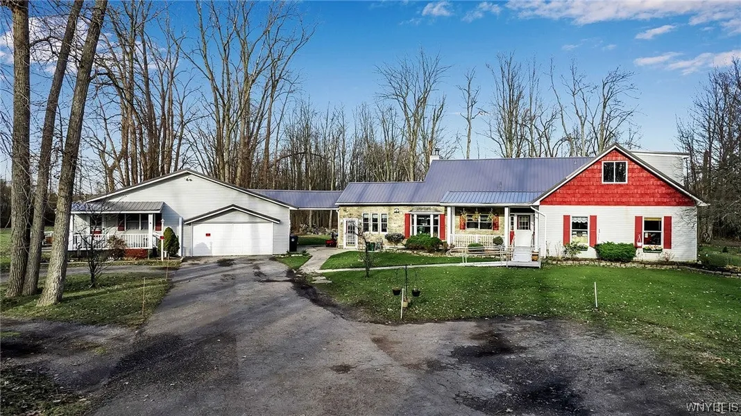 Welcome to this gorgeous, private lot at the end of a quiet cul de sac. Sitting on over 5 acres of land, this home has lots to offer! Large windows on the front of the home along with sliding glass doors on the back side provide views of the surrounding woods and acreage with the pond to follow behind. The main home includes hardwood floors, sky lights, and a wood burning fireplace. Including the first floor primary bed with an ensuite, the main home has 3 beds total. Updates include a new metal roof 2023 and HWT 2018. Detached from the main home, you’ll find the in-laws suite which includes one bed, one bath, as well as an open kitchen, dining, and living space. This detached unit includes separate heating and gas! Seller is providing a home warranty to the seller for one year. Offers will be reviewed as they are received. See also MLS#B1509493.