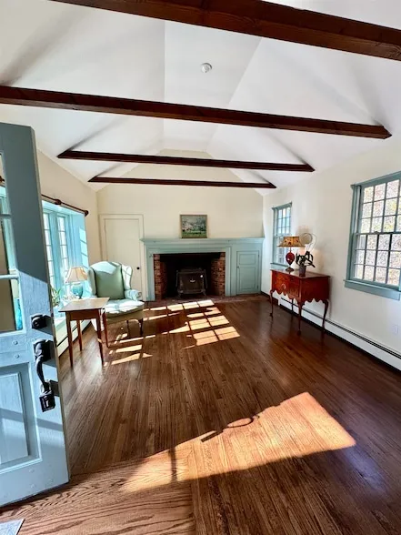 Spend your holidays in this beautiful reproduction home. Can you imagine your family gathered around the Christmas tree in the family room? Chestnuts by the fire? Your whole family together in the large vintage looking dining room? Oh yes it can be done in this fabulous home. This is your next dream come true. A few features include: The large family room boasting cathedral ceilings, exposed beams, and a cozy fireplace w/woodstove, perfect for holiday gatherings. An updated kitchen with granite counters & oak flooring which leads to the spacious dining room w/wide pine floors, ideal for entertaining. A formal living room with fireplace offers a quiet retreat, while a first-floor den/bedroom with bath access and laundry provides flexibility and convenience. Updated vanities in the bathrooms with new flooring show care and quality. Upstairs, wide pine floors and freshly painted bedrooms of...
