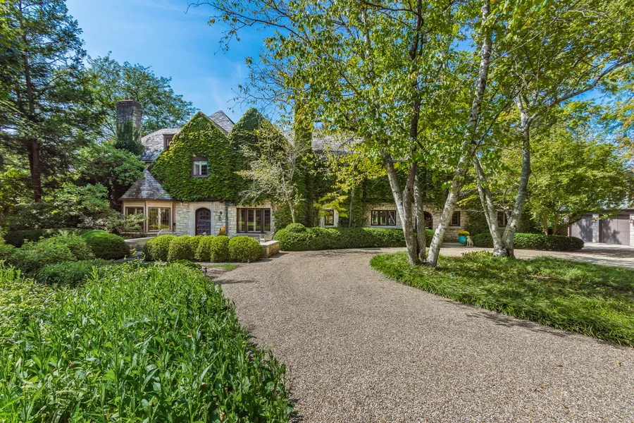 Nobly sequestered on a serene gravel drive, this 2 acre plus property includes abundant tall trees for privacy and impeccably maintained grounds .A large stone patio spans the back of the residence, with a Wisteria covered veranda and built-in barbecue area. Beyond the stone courtyard entry lies this majestic English manor. With 18 rooms, including 7 bedrooms and 7 full and 2 half baths, This home features large rooms, high ceilings and fine Finishes and details. Marble and granite floors, Black Walnut woodwork, oversized pocket doors, beautiful moldings and rounded architectural features illustrate elegance through-out this home.. Baronial primary bedroom suite with a private screened porch overlooking the grounds below. 5 car garages and finished carriage house. Incomparable Estate.