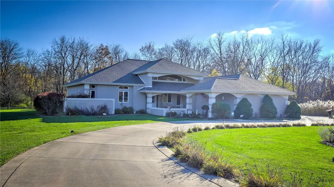 Welcome to this One owner, Custom-built, 4 Bedroom, 3.5 Bath, Raised Ranch situated on 5.4 partially wooded acres. Enter the foyer greeted by a Schoenbeck Crystal Chandelier & 15 ft soaring ceilings. Enjoy modern comforts & timeless style with all-new Luxury Vinyl Plank flooring & newer carpet throughout. You will find Quartz counter tops, fresh paint & Stainless appliances in the kitchen. The Florida floor plan offers versatile spaces including an office & bonus flex space off the master. The spacious en-suite boasts a jetted tub, walk-in closet, & custom automatic shades. Designed with efficiency in mind, this Home features a Geothermal system with dual thermostats and backup electric heat. The lower level comes complete with a 4th Bedroom, Kitchenette, Full Bath & walk-out French doors creating its own private entrance, leading to your Serene backyard. EV hook-up in the 3-car garage. This property combines the best of luxury & comfort on a peaceful, nature filled setting.