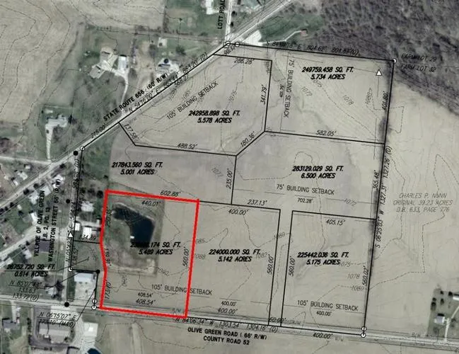 Tract #7 Nice frontage lot with .75 acres pond with dock. Deed restrictions apply. Adjacent land available. 20 minutes to Polaris. Delco water at road. Great value in Big Walnut Schools.