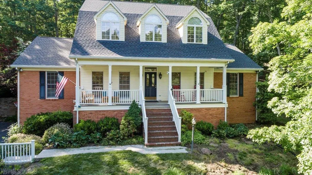 Southern charm! This lovely cape cod home boasts 5BR/3BA and sits on just shy of 5.5 acres in the beautiful Preston Forest development. Enjoy sitting on the covered front porch enjoying your morning coffee or relaxing in the evening in the rear screened porch. As you walk into the foyer you are greeted with gleaming hardwood floors and an abundance of natural light. The primary bedroom/ensuite, second bedroom and laundry/mudroom are conveniently located on the main floor. Cozy up to the fireplace in the living room. Gorgeous built-ins in living room. Eat-in kitchen or formal dining to enjoy your meals. Three large bedrooms upstairs, one with adjoining sitting room/study. There is room for expansion with the unfinished walkout basement. Double tuck under garage. New roof, carpeting and interior paint. Just minutes to Virginia Tech, Downtown Blacksburg, restaurants, shopping.