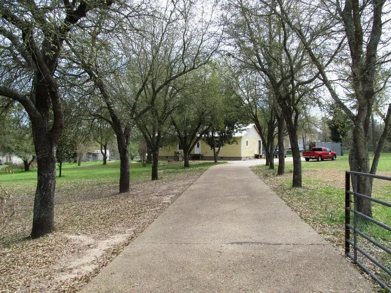 The concrete drive through the tree covered lane ends at a 12 x 36 metal lean-to with concrete floor.