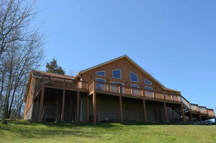 A Work of ART!!! And it's all Natural!! From the Blue Pine Master bedroom to Aspen in 2nd bedroom to the Diamond Willow trim in the kitchen. Top of the line appliances & fixtures exquisite light fixtures to match the decor. Fireplace is personally designed and contructed showing off stones from all over the US. Very well constructed home with storm shelter, 30x40 shop (full bath in shop). Oh! Then there's the view of rolling pasture hills and the creek! You won't find another like this one.