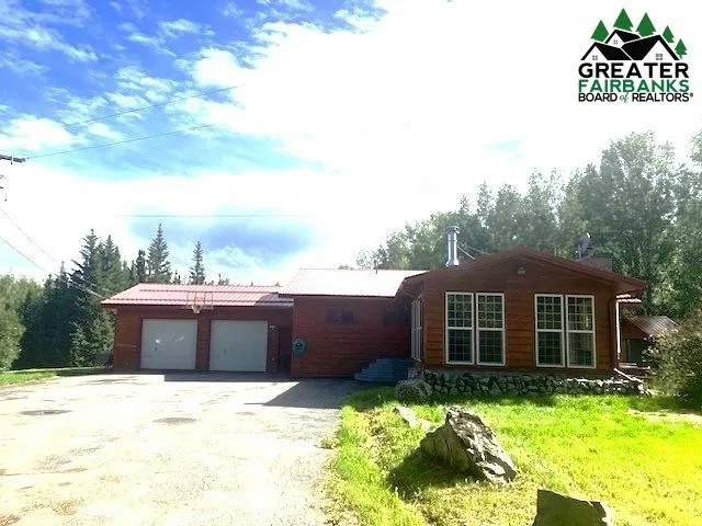 Hidden gem tucked up in the hills off Chena Hot Springs Road. Beautiful cedar siding wraps this home all around, a gorgeous stone fireplace is at the heart of this home with an updated wood stove insert to keep it nice and toasty all winter long. This 4 bed 3 bath house also features 3 living spaces, 2 living rooms and a den with 360 windows to catch all the light possible. A large 2 car garage AND a giant detached shop with room for all your Alaskan toys or projects. This property also has a dry cabin for some extra rental income or a cozy spot for visitors. Smoked salmon on your mind? An incredible large built in exterior smoke house is yet another bonus on this lot. The private lot has tons of room to spread out, garden, play or just enjoy the quiet serene views. This home still has lots of potential for interior updates to make it yours and gain some equity.