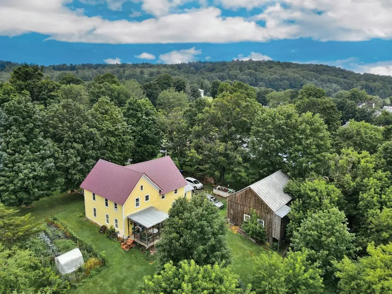 Rural living at its finest, this gorgeous 1850's farmhouse offers the perfect country escape. With 5.5 acres of secluded land there is plenty of opportunity for agricultural endeavors, recreational activities, or event planning. Abutting the river, and with breathtaking mountain views, this unique parcel is not only beautiful - but prosperous! Home to both apple & cherry trees, blackberry bushes, and currently housing yards of flourishing garden space, it's the perfect chance to utilize nature at its best. Inside is characterized by original hardwood flooring, an expansive kitchen & dining area, and two living spaces - perfect for gatherings. Upstairs offers 4 generously sized bedrooms with plenty of natural light. With updates over the past five years, such as a new roof, new chimney, and updated wiring to both the house and barn, this property has massive potential to offer its next owner. The detached barn/garage space functions as storage or an agricultural opportunity, while the newly constructed chicken coop is fully operational and ready for use. Manicured paths guide you from the backyard, past additional gardening spaces, and down to the heart of the 5.5 acre parcel where you can privately enjoy all that Vermont has to offer. Don't miss your chance to see this one, it's the perfect country home.