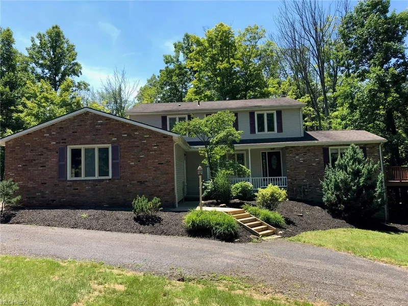 Park-like paradise on over 5 acres overlooking a creek. Well over 3000 sq ft of living space including the rooms in the finished basement. Spacious, eat-in kitchen features lots of newer cabinets, solid surface counters, ceramic flooring, desk area, all appliances included (stainless refrigerator, dishwasher, built-in oven, plus a free-standing range, microwave). Huge living room with fireplace & hardwood floors. 1st floor also includes a formal dining room, family room, laundry, & powder room. Upstairs are 4 bedrooms, including a large master with en-suite bath & walk-in closet. Walk-out basement has a rec room plus 2 other finished rooms, great for an office or workout room (or potential 5th and 6th bedrooms). Enjoy the wooded lot on the 2-story deck. Other features: fenced area (great for pets), 2nd laundry in basement, ceiling fans, central AC, circular driveway.