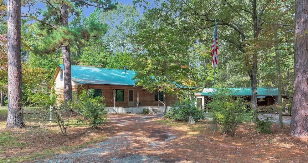 Tucked away on over 5 peaceful acres, this 3-bed, 2-bath traditional log cabin offers timeless warmth, character, and quiet living. With 2,150 sq ft of space, enjoy wood-paneled interiors, a cozy wood-burning stove, and a spacious open-concept layout. Upstairs, a charming catwalk connects two bonus rooms perfect for a library, office, or playroom. A large covered front porch invites morning coffee and evening relaxation surrounded by nature. Enjoy true rustic living just minutes from modern conveniences.