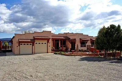 Striking Southwest/Old World style custom home in prestigious Bear Creek. Secluded and private, yet minutes to Salida, BLM, National Forest, the Rainbow Trail, and the Arkansas River. Gourmet chefs kitchen has an abundance of space and a 48 Viking Range with 2 ovens, top of the line appliances, granite countertops, and in-floor heat. Sophisticated great room/dining room with a wet bar, wine cooler, and an ice machine. In-house vacuum system; Hardwood and tile flooring; 2 Vermont Castings wood stoves; Solar domestic hot water. Passive solar helps heat in winter and awnings keep it cool in summer. Oversized 2-car garage/shop. Beautiful courtyard and gorgeous perennial garden.