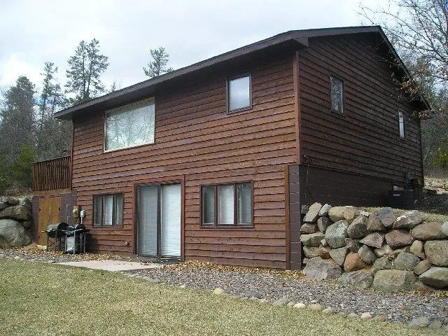 851041 - MINONG FLOWAGE. Over 5 acre private and secluded one of a kind parcel on a bay of this large popular waterway. Great fishing, boating, swimming. It is 50 ft of sandy south facing shoreline but dont let that fool you, there are no close neighbors or docks on either side, looks and feels like much more. No steps, level elevation to shoreline. Deep water for EZ in and out with pontoon and boat. Beautifully landscaped around the home and towards the waterfront. The yard has an underground sprinkler system. Big boulder rock walls, rock edging around home. Rustic cedar siding. Northwood dcor interior updated with pine walls and ceilings, wood flooring, and custom pine cabinets. 4 bedrooms and 1 bath with 1,560 sq. ft. of finished living space. Open floor plan. Walk out lower level with family room and utility. Central A/C. New mechanicals, well, and septic.