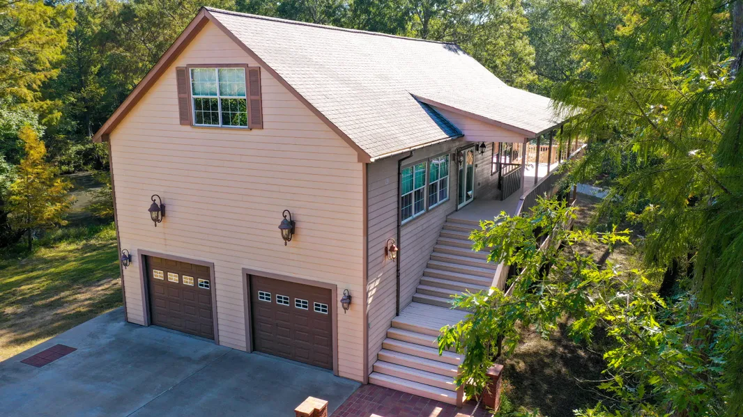 Natural light pours in to the sprawling interior of the home with views of the great outdoors in every direction. The gorgeous wooden floors, sizable rooms, and plentiful cabinetry are pristine and ready to welcome friends and family. Upstairs, soak up the scenes from the comfort of your own extra large jet tub after a day on the waterways. This lakeside mansion ensures an unforgettable experience for all. A storage container and a gigantic multiple, car, boat or toy garage (one side is a drive through), is a bonus features of this magnificent property. The home was built by the current owners and there are multiple details only a tour of the home would show as to the care and thoughtfulness of every detail. The living areas of the home has never flooded according to the owners, only the garage area