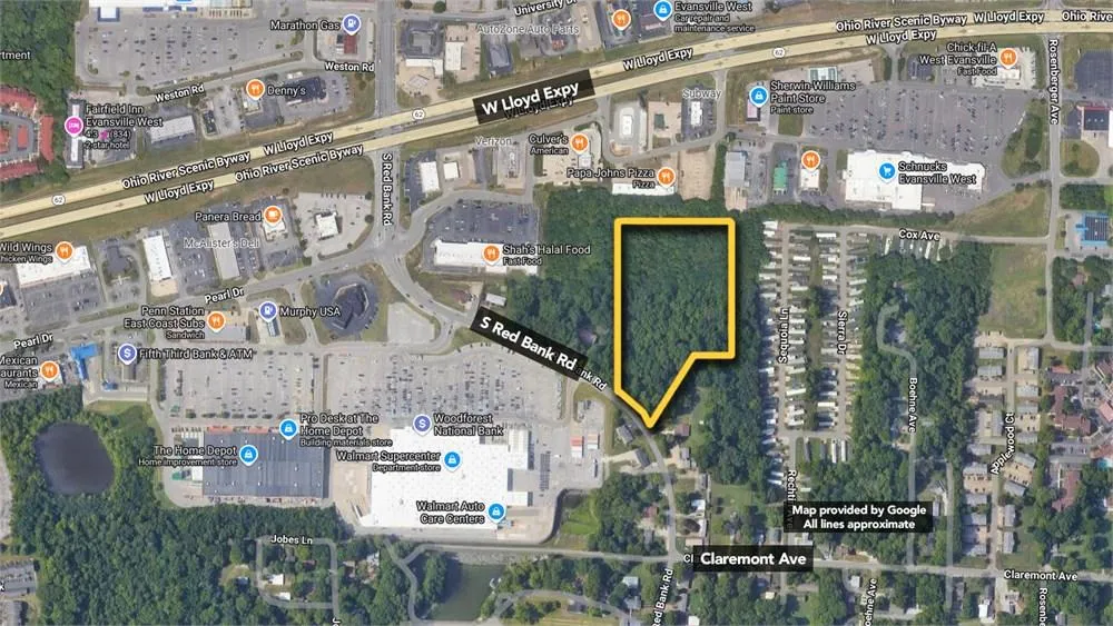 Rare available 5.58+/- ac of land on the Westside of Evansville near shopping and dining. This lot is wooded and would make a nice site for a pocket condominium development, multifamily, or other light commercial use. Currently zoned R1 with public water available.