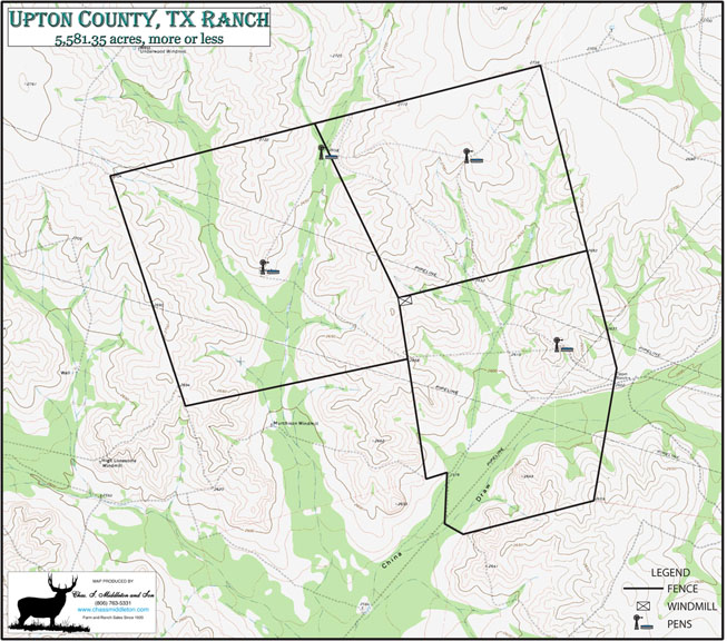 Terrain: The topography of the property is described as rolling terrain with productive bottoms. Limestone rock outcroppings and deeper soils through the lower elevations. All of the ranch is in native pasture and brush is principally mesquite, black brush, greasewood with scattered pear and cholla.The ranch is fenced and crossfenced into three pastures. Fences are all netwire and are considered to be in good condition. This property is principally operated as a sheep and goat ranch.