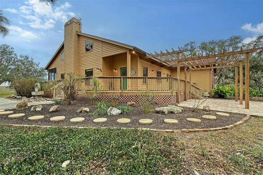 Under contract-accepting backup offers. MAJOR PRICE REDUCTION: More than $75,000 under appraisal value. Immerse yourself in the quiet grace and timeless appeal of country living with this idyllic 2,734-square-foot estate set on 5.59 acres. Framed by shady majestic oaks and set at the end of a scenic driveway, this 4-bedroom, 3-bath residence offers timeless charm. The great room impresses with soaring 17-foot cathedral ceilings and a striking floor-to-ceiling stone fireplace. The kitchen offers a breakfast bar, quartz counters, and stainless-steel appliances, while the screened wrap-around porch invites you to savor panoramic views of the serene surroundings. Two guest bedrooms now feature FRESHLY INSTALLED HIGH-END WATERPROOF LAMINATE FLOORING, combining style with durability. Equestrian enthusiasts will appreciate the 4-stall barn, while the detached 2-car garage and fenced grounds add practicality and security. Additional features include a loft that doubles as the fourth bedroom, a pergola-covered patio, and four spacious walk-in closets. This property offers a lifestyle that blends rustic elegance with modern comfort-your perfect retreat awaits.