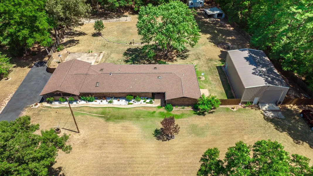 Escape the chaos, come enjoy this stunning, partially furnished 3 bedroom, 2 bath, 2938 soft home, sitting on 5.6 Acres. Massive windows in the living room, large open dining room & kitchen have spectacular views of the fully fenced backyard, the woods beyond & with deer frequently grazing. Have children that play baseball or softball? Add a net & you're ready with the 14X70 batting cage frame. A 30x50 insulated shop, electric doors on both ends, two other sheds, plenty of room for all of your toys. Fully enclosed chicken coop (or kennel). Beautifully renovated home with soft neutral tones & natural light from newer windows. Kitchen boasts granite counters. Less than 2yrs old, all appliances stay! Vaulted ceilings in secluded master with dual sinks, tiled shower, walk-in closet, & private deck. 2 secondary rooms share a bathroom. Newer roof & HVAC. A true homestead with the work already amazingly done! *From Hughes Springs, south on FM 161. Right right on Hillcrest. Property on right.*