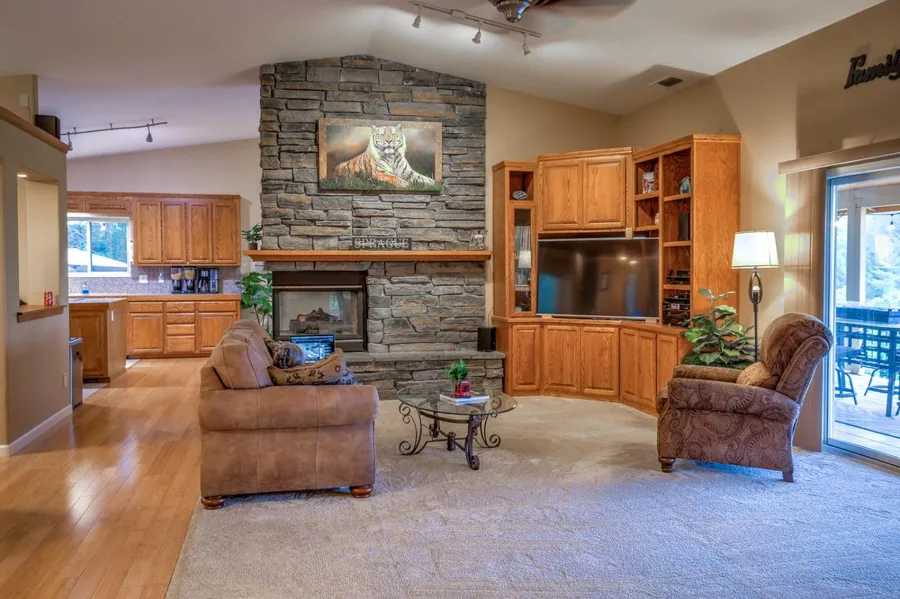 Only 15 minutes to Auburn, this Mountain Top retreat has multiple features (ask to see list) including owned SOLAR, a full SHOP, Owned Solar, Saltwater Pool, BBQ island, Views, Fenced Garden Beds & Fruit Trees, Chicken Coop, Greenhouse. SOLAR is 7.2k & Tesla back-up batteries, workshop, RV storage bays, + more covered parking. The seasonal pond lives at the edge of the wooded acres. The open floor plan features a double-sided stone gas fireplace, bamboo floors, new carpet, and lots of windows to a large patio to soak in the views. The 3/2 Living space is one level, with bonus suite/game room or full guest quarters with full bath. Tons of outdoor living space, the lower trex deck includes a bar, upper deck is tiled & pre-wired for a hot tub, both decks are covered. The master suite has walk-in closet, large open dual-head shower & a private room with outside access via French doors to the...