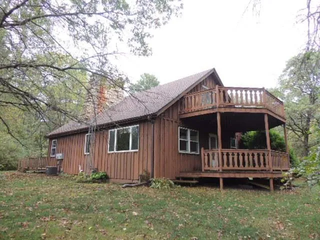 "Up North" Lodge feel in this custom built home w/carved railings around all 3 decks to enjoy wooded privacy & views of the lake. The Great Rm has a 15' stone wd burning fireplace w/rich knotty pine walls & hand carved accent beams. Dining rm opens into the kitchen w/a fieldstone fireplace wall w/Fisher wd burning stove for a warm & cozy feeling. Upper loft, bdrm & bath. LL fam rm/rec rm w/2nd fireplace, bdrm & bth. Add'l 2 unbuildable lots across the road w/lake access, total package $285,000