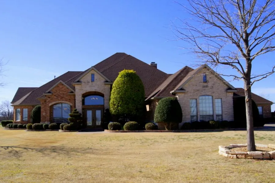 Located 5 minutes from Wichita Falls is this gorgeous 4 bedroom, 3 bath, 3-car garage home beautifully sited on 5.76 acres with immaculate grounds and workshop. Built in 1998 by Ed Routon. Great open floor plan with living room, breakfast area, and kitchen. Formal dining. Office with built-in desk. Media room shares a double sided fireplace with the living room. Exercise room/Sunroom has wall of windows and access to the patio. Kitchen has built-in appliances ... smooth-top cooktop, double ovens, microwave, and custom sub-zero refrigerator. Half bath located off the utility room. Master suite is isolated and generous in size and has a fireplace. Master bath has Jacuzzi tub plus shower and a reinforced storm closet/safe room. Bedrooms 2 and 3 share a pass-thru bath with a tub/shower combination. Bedroom 4 has an on-suite bath. Wonderful backyard with large covered patio, in-ground pool wi...