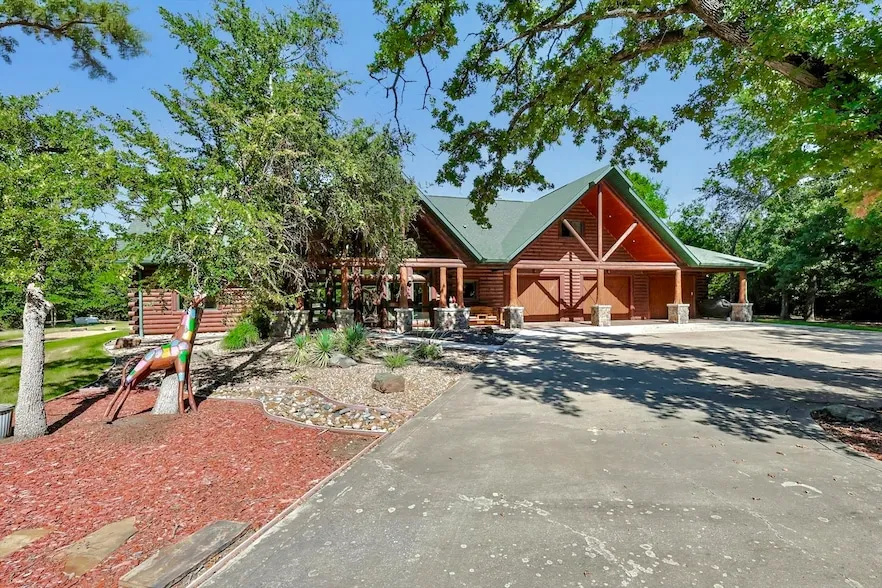 Escape to your own luxury lodge just 45 minutes from Dallas and 30 minutes from DFW Airport. Nestled on 5.68 wooded acres in Eagle s Landing, this fully furnished, 3-bed, 2.5-bath custom log cabin blends rustic charm with refined comfort. The lodge-style great room boasts soaring cathedral ceilings, knotty pine finishes, and a dramatic stone fireplace under a full A-frame glass wall framing the trees and sky. Chef s kitchen is fully outfitted, while the primary suite feels like a spa with a soaking tub, fireplace, and floating vanities. Outdoors, enjoy a patio with grill and TV, walking trails to Lake Lewisville, and private access to a community lakeside park. There's room for a 40+ ft RV with hookups, a 3-car garage, and a circular driveway with RV-friendly turnaround. This is more than a home it s a retreat, a second home, a legacy property ready to host holidays, lake weekends, or qu...