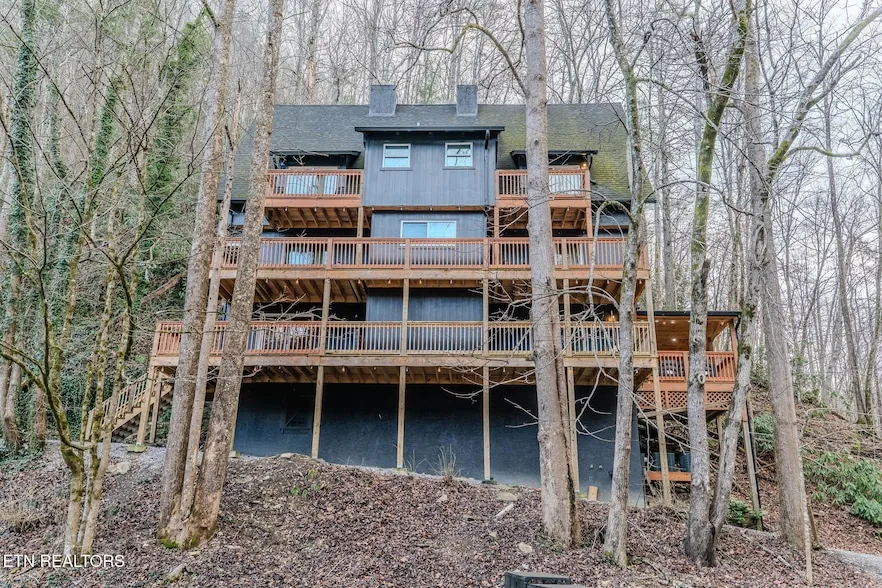 Two.... Yes TWO beautiful cabins sold together on almost 6 acres with a perfect creek that wraps around half the property and walking distance to the community pool!! Was on pace for over $250,000 in gross revenue in 2025! Both Cabins come completely furnished including stainless steel appliances and a hot tub (one for each cabin)! This originally built German style cabin was completely redone with all modern finishes and updates. Additional features include: 5 fire places, game room, kids loft/game area, arcade, pool table, large bedrooms, walk in showers, sky lights, sun-room, hot tubs, three deck levels, huge flat yard area to use your imagination (maybe add pickle-ball court, putput golf, basketball court, walking/bike track, etc.), great creek to play in, outdoor fire pit, huge parking area, and privacy! When you step outside enjoy the three level decks and privacy of the woods with a ridge view and the sound of the creek flowing year round. Also enjoy the benefit of being in the only maned gated community in the area along with some great community amenities such as the outdoor pool and tennis courts which are walking distance from the cabin, a Frisbee golf course, pick-nick pavilion, dog park, walking trail and play ground! Lastly enjoy low county only taxes and being about 15 minutes from the parkway of Pigeon Forge and easy access to everything our great area has to offer! Cabin 1 (3173): 5 beds 4 full bathrooms with 3,700 sqft. Cabin 2 (3175): 2 bed 2bath with 1,200 sqft