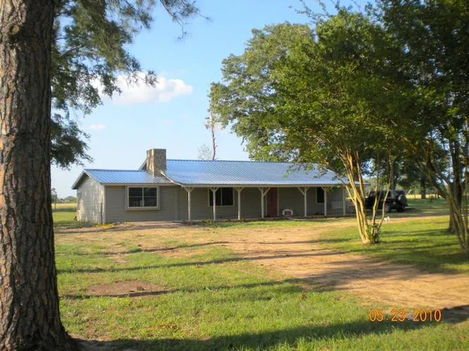 The home features a brand new metal roof, large living room with wood burning fireplace, tile and laminate floors, open dining, galley style kitchen, split bedrooms, a stocked pond & great shade trees.