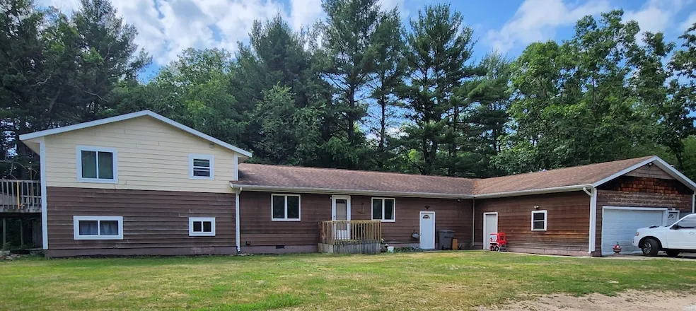 Just over 2,700 sq ft of living space, 4 bedrooms, 2 full baths and tons of storage including an attached 4 stall garage! The sellers are motivated to move up North. They put in a new furnace with AC, New flooring on the main and upper floors and a new electric stove. This home is move in ready on 5.77 acres in Oakridge Schools. The pole building is a big bonus for all of your toys and additional storage. There is option of the primary upstairs or on the main level with a very large bedroom up or a main floor bedroom with door access into the main floor bath. The walk-out lower level has access to the back yard and the side yard for a private oasis all your own. This home is off the road for added privacy.