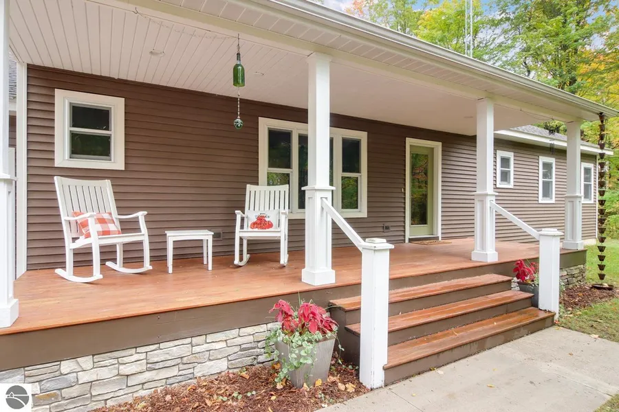 Welcome to 5937 Wrenwood Way, a truly unique and captivating property that perfectly blends modern living and countryside charm. This single-family home, nestled on over 5 acres of land, is a haven for those seeking a hobby farm that allows animals. Built in 2006, this well-constructed ranch-style home boasts 4 bedrooms and 3.5 bathrooms, providing ample space for a growing family or those who love to entertain. Step inside and be greeted by an open-concept living space. The main floor also includes a convenient primary suite with a private bathroom, 2 bedrooms, a full bath, and a powder room for guests. The kitchen space is complete with a large island, perfect for preparing meals and hosting gatherings. One of the highlights of this property is the finished basement, which offers additional living space and endless possibilities. It includes a guest bedroom and a full bathroom, making it ideal for hosting overnight guests or creating a private retreat. The spacious storage room with built-in shelves offers plenty of space for all your belongings, while a hobby/private safe room provides peace of mind. Outside, you'll discover a newly built deck with a pergola, ideal for enjoying the serene surroundings. The property also features a barn to house farm animals and a garden area, perfect for cultivating your own fruits and vegetables. Take a stroll along the beautiful hardwoods and walking trails surrounding the lot, immersing yourself in nature's beauty. This energy-efficient home offers two heating options: a forced air system or an exterior wood-burning system. With an average heating bill of only $600 per year, you can enjoy comfort without breaking the bank. Located in the highly sought-after Kingsley School District and close to Traverse City, this property offers the perfect combination of privacy and convenience. Don't miss the opportunity to make this secluded sanctuary your own.