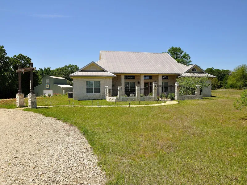 This custom designed well-appointed 3 bedroom, 2 bathroom home in Plantation Lake Estates on a gentle rolling 5.79 acres is loaded with all the extras. The home features 2,970 sq. ft., a state-of-the-art gourmet kitchen with large walk-in pantry, a bright open floor plan, custom built-ins throughout, security system, high ceilings, a beautiful stone fireplace, fabulous windows, private covered back porch, a study/library with wall to wall bookcases, oversized garage w/utility closet and much more! The spacious master suite is truly an owner's retreat includes a sitting area with its own door leading out to the back porch, a large master custom closet and the luxurious master bath that includes his and her vanities, a deep Japanese soaking tub and separate shower. The property includes a barn with roll up doors with an office/hobby room upstairs, mature trees including live oaks and a wet weather creek. This home is well located with easy access to US Hwy 290 making this property an easy commute to Houston. All well maintained and magnificent! This beautiful home will exceed your expectations! Make an appointment to see for yourself! Additional acreage available.