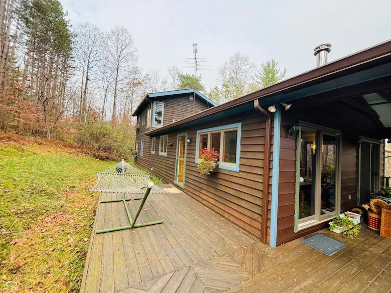 Welcome to 2221 Blue Creek Road, a charming 3BR/3BA retreat in the Pines. Ideally located, this home on 5 acres offers country living with easy access to amenities- just 10 minutes from Brookville, IN, 20 minutes from Harrison, OH, and 45 minutes from Cincinnati and CVG Airport. Craftsmanship and durability converge with the home's 2x6 construction and custom finishes. Anderson Windows throughout frame treehouse views. The HVAC system with a heat pump is 2 years old, ensuring energy efficiency and modern climate control, and a wood stove brings a cozy ambiance on a winter morning. Discover your peaceful escape at 2221 Blue Creek Rd., where convenience meets comfort in a beautifully crafted home.