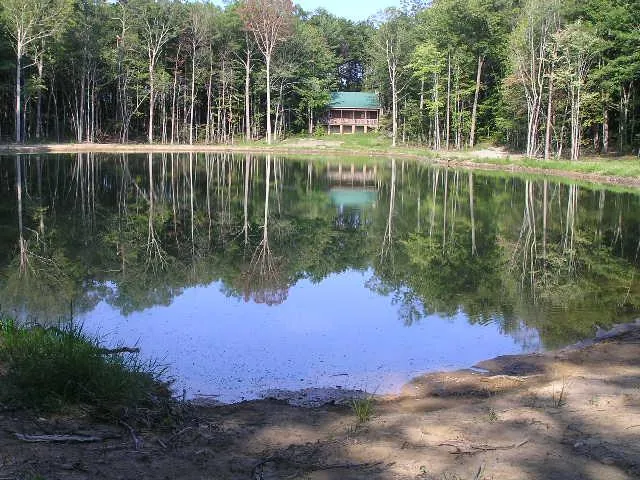 This is a unfinished cabin with a well and 5.8 wooded acres. It has well and is wired but you must use a generator as power is a mile+ away. A great weekend getaway. Owner financing is available. It now includes a pond stright in front of the front porch. Camp and fish. It can be bought with 11.8 acres for $94,000.