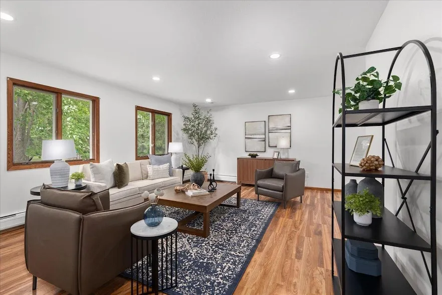This beautifully remodeled home is nestled on 6 acres, offering privacy, room to roam, and all the comforts of contemporary living. Step inside to a bright and open main level featuring a spacious kitchen with large center island and a picture window showcasing scenic views of the property. The generous family room and adjacent dining area are perfect for everyday living and entertaining. Upstairs you'll find three bedrooms and a fully updated walk-through bath with double vanity, while the lower level offers two additional bedrooms, a stylishly remodeled 3 4 bath, and a cozy new gas fireplace with brick surround. The wet bar adds a perfect touch for entertaining guests, and the large mudroom and breezeway provide functional transitions between the home and oversized two-stall garage. Additional features include fresh exterior paint, updated lighting, flooring, and fixtures throughout, a...
