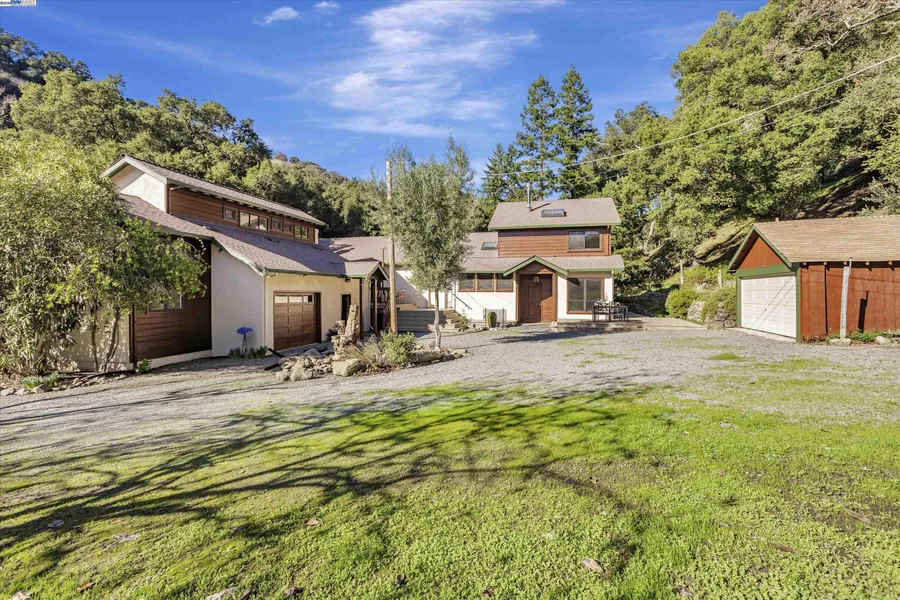 **NOTE: We've accepted a CONTINGENT OFFER, but please continue to show.** AN EXCEPTIONAL CRAFTSMAN-STYLE SUNOL PROPERTY! Main Home: 3 bedroom, 2 bath with terraced Family Room and spacious, well-lit Dining Area. Central AC and highly detailed finishes. Free-Standing gas range, cement counters, dishwasher and refrigerator. Large lower-level basement with outside access and laundry hook-ups. Spacious Art Studio above oversized 2-car Garage in front (with workshop area & drive-thru garage door at its rear). Additional 2-car Garage at rear of property. Very large, separate workshop with darkroom, storage, etc (excellent creative area). Separate garden yard, large sunny meadow with full-sized bocce ball court. This home has been shown a great deal of love.