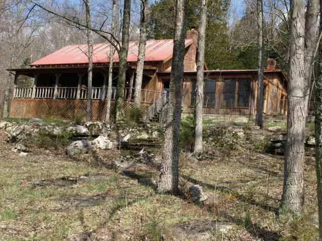 5.88 ac with a 2 story TN style rustic style home. Wood and more wood with wood walls, hardwood floors, wood vaulted ceilings and a TN stone oval fireplace (one of a kind). Home is settled way off of the main road in a wooded private and secluded setting. 3BD/2BA, approx 1560 sq ft, natural stone patio and large front covered deck. Open concept country kitchen formal dining room with a black iron cast stove and a breakfast nook. Master bedroom is the upper loft style with a master bath.(The current seller has the master bedroom at the loft, the master bedroom could be on the main level if you choose). Hardwood, carpet and tile floors thru out. 12X24 utility shed with electric, 2 car detached open garage and an old tree house (may not be safe). Pond and a spring fed branch small creek. Lovely rock formations | no restrictions | loads of wildlife | hiking trails throughout the property |...