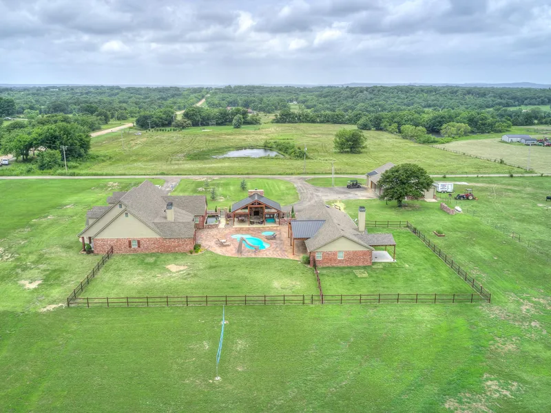 RESORT STYLE OUTDOOR LIVING SPACES WITH TWO ELEGANTLY APPOINTED HOMES AND A 30x60 SHOP ENGINEERED TO PERFECTION - AN ENTERTAINER'S DREAM - This setup was thoughtfully planned, providing the ultimate lifestyle for any family to enjoy LARGE get together's. The 5 acres provides plenty of LAND to spread out and if thats not enough, or you need more space for residences or a home business, there is an additional 23 acres with utilities and plenty of road acres, that could be purchased there is a small pond, great for hunting, hiking trail riding etc.