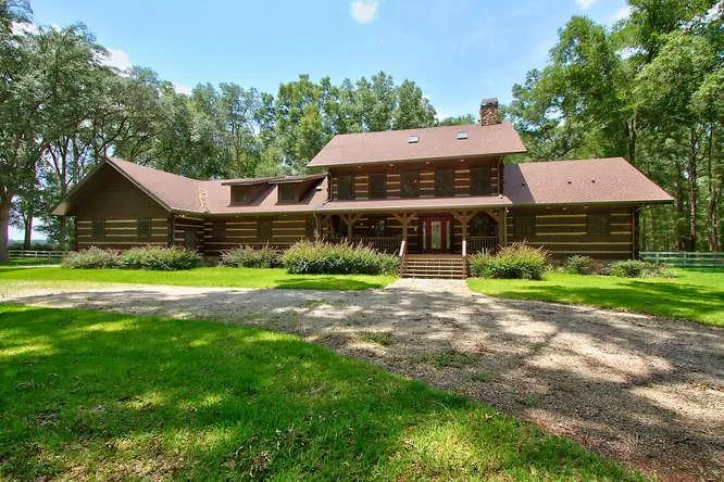 Hearthstone Custom Built Log Home. 4000 sq ft, 4 BR/3.5 baths; split plan, first floor master with huge walk-in closet and jacuzzi tub; also first floor guest suite; large second floor 500 sq ft bonus room; kitchen and laundry room have custom solid hickory cabinets; separate beverage area; kitchen has Stainless KitchenAid premium energy efficient appliances; 5 burner gas cooktop; Hickory flooring first floor, solid pine flooring second; large open living/dining area with high ceiling and skylights; 4-zoned a/c; 5 wooded acres; backyard completely surrounded with 4-slat lumber and wire fencing; suitable for pets and horses; screened back porch and open deck off master bedroom. Very energy efficient, tons of storage and a huge 4 car garage.