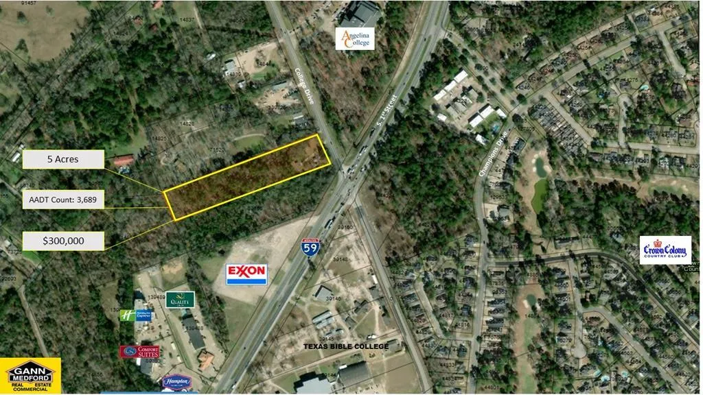 PRIME COMMERCIAL LOCATION! Below current appraisal of $335,000 dated 1-28-19. PUD zoning allows almost anything. Heavily traveled College Drive just a few yards West of Hwy 59. Old house & mobile home given no value.