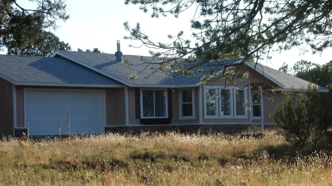Ranch-style home on 5 acres, fenced w/ pole barn (50'x30') & outbuildings. 2-car attached garage, circular drive. Roomy home w/4 bedrooms, brick wood-burning fireplace in great room that also has original wood flooring. Vaulted ceilings, arched doorways and log accents. Home has recently had new carpeting installed, as well as new vinyl windows throughout and the exterior has been recently painted. Private well plus newer pumphouse. Adjoins Apache Trails subdivision off Hwy. 60 abt 13 mi. E. of Show Low. Easy access, paved roads to the fenced/gateddriveway. The home is at the back of the property in the trees for privacy. The front of the property next to the highway is zoned commercial and could be used as such. There is some fencing for horses there as well.