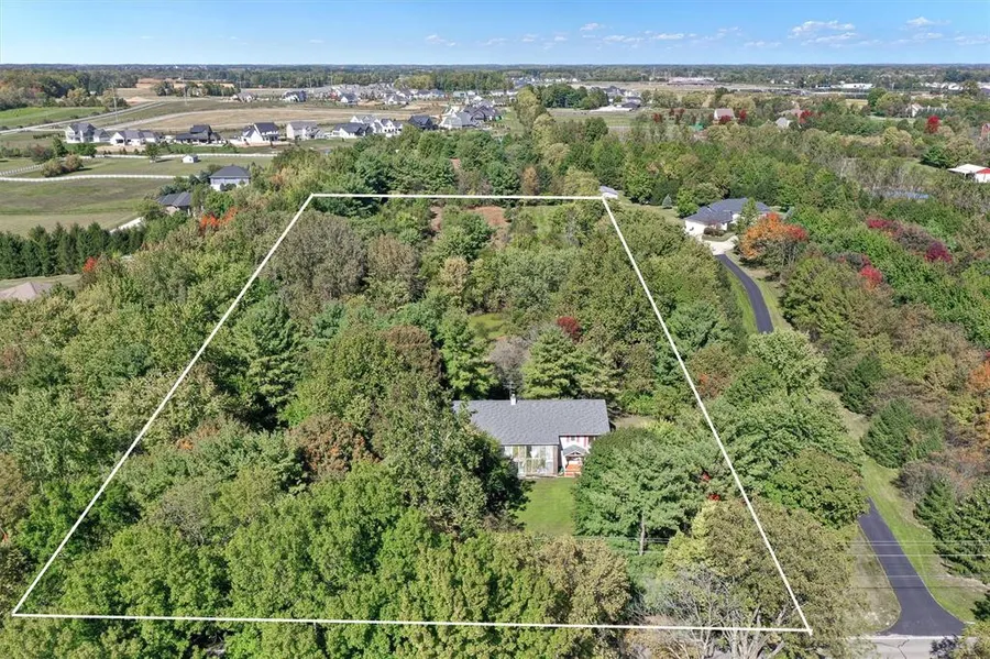 Fantastic opportunity to own 5+ acres of wooded Zionsville property. Just 10 minutes to downtown Zionsville and I65 and 5 minutes from schools. This completely private lot is a nature lovers paradise - filled with mature trees and its own private pond. There's an mid-80s contemporary style home on the property (but it needs a lot of love and a creative mind). The 4,000 square foot home has soaring ceilings, open spaces, large rooms, a loft area, and loads of potential. Or, just fall in love with the serenity of the yard and proximity to town to build your own dream home. Definitely a unique opportunity to own a diamond in the rough on a sought-after location. Well pump 2016, roof 2018, HVAC 2020. Home is being sold as-is.