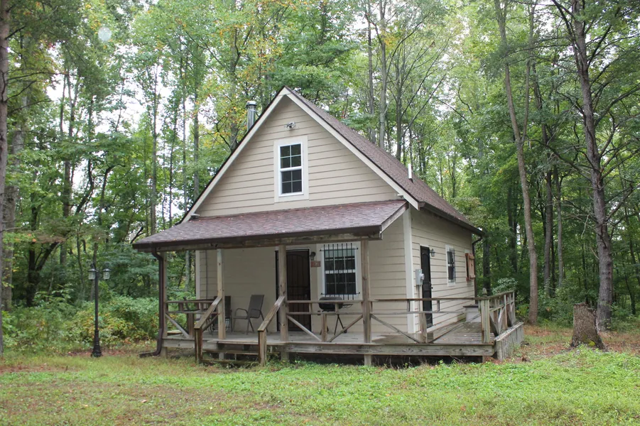 Looking for just the right cabin in the woods? Goldilocks would be right at home here. Great room with high, beamed ceiling, freestanding wood stove for extra heat source, wood floors throughout. Very nice custom wood & metal staircase to 19 x 11 loft, great for extra sleeping space. Kitchen area with oven/range, refrigerator, microwave. One bedroom and full bath with corner step-in shower. Natural pine trim. Durable composite siding. Covered porch plus open deck. All woods towards the end of a private road.