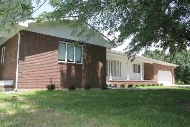 Beautiful 3 bedroom 2 1/2 bath all brick ranch style home on 5 acres in rural Butler County, Kansas. This property is close to blacktop for quick and easy access to surrounding towns. As you step onto the covered front porch and enter through the front door, you will notice the entryway with coat closet and the beautiful two-way wood burning fireplace w/ blower. That two-way fireplace displays beautifully in both the living room and the family room. The large kitchen has excellent cabinet and counter space, an island, refrigerator, dishwasher, disposal, range and oven. There is a nice eating space in the kitchen with a great view of the beautiful backyard. Enjoy family meals in the formal dining room. The large master bedroom has double closets and full bath. Seldom will you find a larger main floor laundry room...double closets, pantry, garage walk through door, and backyard access plus a half bath. The full basement is ready to be finished. There is already a wood burning insert, huge living space, 1 bedroom, and 1 large bathroom framed, Plus abundant storage. Other interior amenities include an attic fan and zoned HVAC. The backyard has many many trees planted, a beautiful back deck and back patio, an old red barn, storage building, and covered carport. Construction on this home is superb, with 6" walls and as good of lumber and concrete as you'll see. Take a look at this property, and have a chance to call such a great property your home!