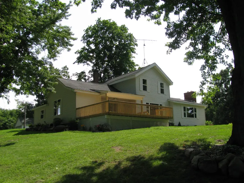 5.1 Acres, beautiful setting on hill! Like New! You'll love the custom kitchen with hickory cabinetry, brand new appliances including built-in microwave & dishwasher, ceramic tile back splash and pantry with roll out drawers. large 13.5 x 15 dining room with 8' sliding glass door leading to the new 16 x 22.5 wood deck. Gorgeous oak flooring in the kitchen, dining room and living room! Main floor master bedroom with private bath. New built-in bunk beds in second main floor bedroom. Spacious family room with new carpeting and brick fireplace. Double closet in 2nd floor front bedroom. New in 2014: vinyl siding, eaves troughs, vinyl thermo pane replacement windows, most light fixtures, bathrooms and fresh paint. Newer high-efficiency Payne propane furnace & central air conditioning. Beautiful landscaping and private setting! Great location near Harwood Lake and Corey Lake!