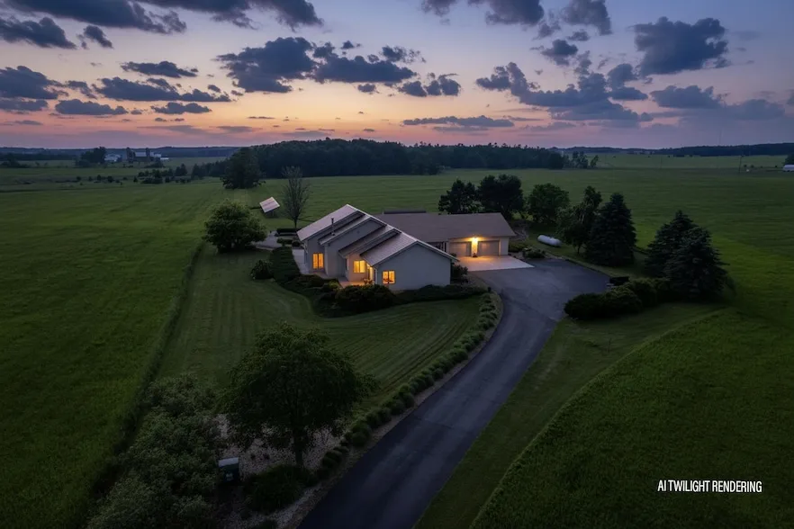 WELCOME TO THIS STRIKING CUSTOM-DESIGNED 3 BEDROOM, 2 BATH HOME NESTLED ON 5 ACRES MOL WITH AN ADDITIONAL 283 ACRES AVAILABLE. This beautiful home offers serene views, breathtaking sunsets, and frequent visits from area wildlife, creating a peaceful sanctuary set well back from the road on an asphalt driveway. Built with durable steel frame and stucco exterior, the home is as solid as it is stylish. An inviting 8' entry door greets you into the thoughtfully designed living space. The kitchen is a chef's dream, featuring birch cabinetry, a granite-topped island with breakfast bar, Sub-Zero refrigerator, and all appliances included. The layout flows into the dining area and inviting living room, featuring a woodburning stove for added warmth and ambience. A split bedroom design provides added privacy to the generous primary suite, complete with a luxurious bath featuring a corner whirlpool...