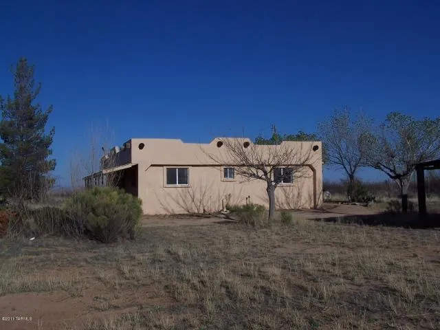 Nice Santa Fe style home on 5 acres, fenced and crossed fenced. New carpet in living room and bedrooms. New tile floors throughout the entire home. Metal roof, covered front patio, carport with built in BBQ. Two out buildings one can be used a tack room/storage the other can be used a large workshop. Mature trees, private well, great views of Cochise Stronghold Mountains and only 2 blocks off paved road. This is a must see home.