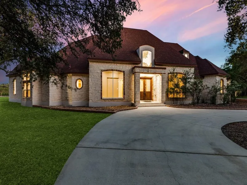 Come and experience the epitome of luxury and elegance found in this beautiful Spring Branch home. Spanning 6,355 sqft, this miraculous home boasts designer finishes, high ceilings, and ample space for entertaining or spending quality time with loved ones. Gather with friends and loved ones in the grand living room featuring a floor-to-ceiling stone fireplace and gorgeous curved ceiling accents, all overlooking the beautiful Texas Hill Country. The home backs up to a private ranch allowing for an extra touch of privacy and seclusion. Culinary enthusiasts will fall in love with the fabulous chef's kitchen offering a 6-burner gas stove top, an island with an additional sink and pot burner, and sprawling countertop prep space. The dining room is an ideal space for entertaining, with a full stone wall accent surrounding the area. Find ultimate tranquility within the primary bedroom with a fireplace, private access to the backyard, and an exceptional spa-like bathroom with a jacuzzi tub, dual vanities, and a walk-in shower. With an additional four well-appointed bedrooms, new owners can use each space as needed. Other standout features include a loft space above the garage containing one bedroom and bath, as well as a large area ideal for a media room. This custom-built home in Spring Branch truly offers unmatched tranquility. Come and explore this home today and make it your very own.