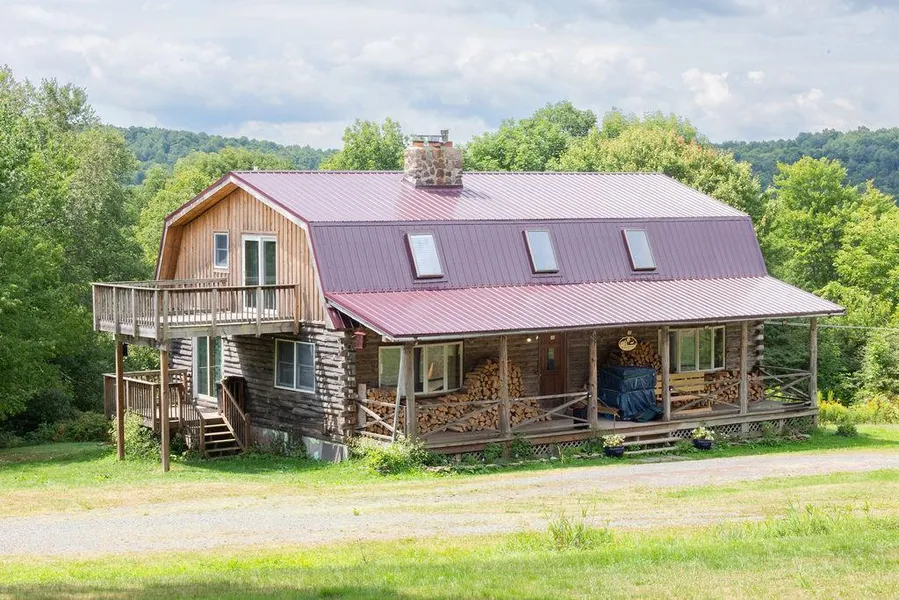 Seclusion! Amazing opportunity to purchase your unique log cabin home on 5 acres backing up to woods and fields, with your own private pond.Beautifully nestled in the Catskills this true two-story log cabin home has ample living and entertainment space: 4 large bedrooms, 3 baths, full beam ceilings and a huge basement. The property features historic stone walls, fruit trees, a healthy pond (newts!), an above-ground pool, and amazing views from all of its 4 porches.Entering through the front door via the perfect sitting porch into an entry with vaulted ceilings and sky lights. On the first floor, there is a large kitchen opening into a spacious living room area with a wood burning stove. Both the kitchen and living room areas have sliding glass doors to give access to a large deck. The first floor also features a large size dining room and a separate room, currently used as game room and ...