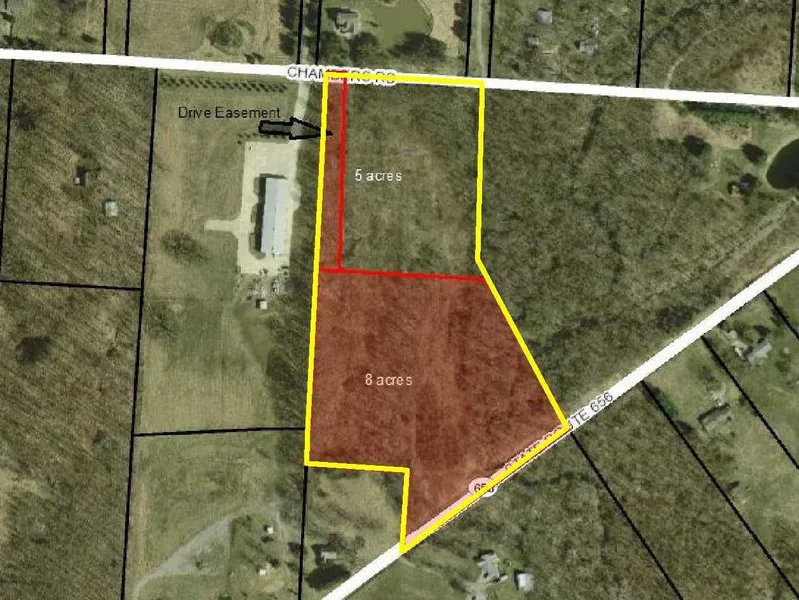 Nice 5 acre building lot with 420' of frontage on Chambers Road. Lots of trees provides lots of privacy on this quiet Township Road. Also there is an 8 acre adjoining lot for sale that has 500+ of frontage on State Route 656 with streams, trees, and lots of contour. The 8 acre tract is priced at $89,900 and will have an ingress/egress easement off of Chambers Road. This is a two parcel listing with the 5 acres at $79,900 and the 8 acres at $89,900. Great commute with easy access to I-71/& 36/37.