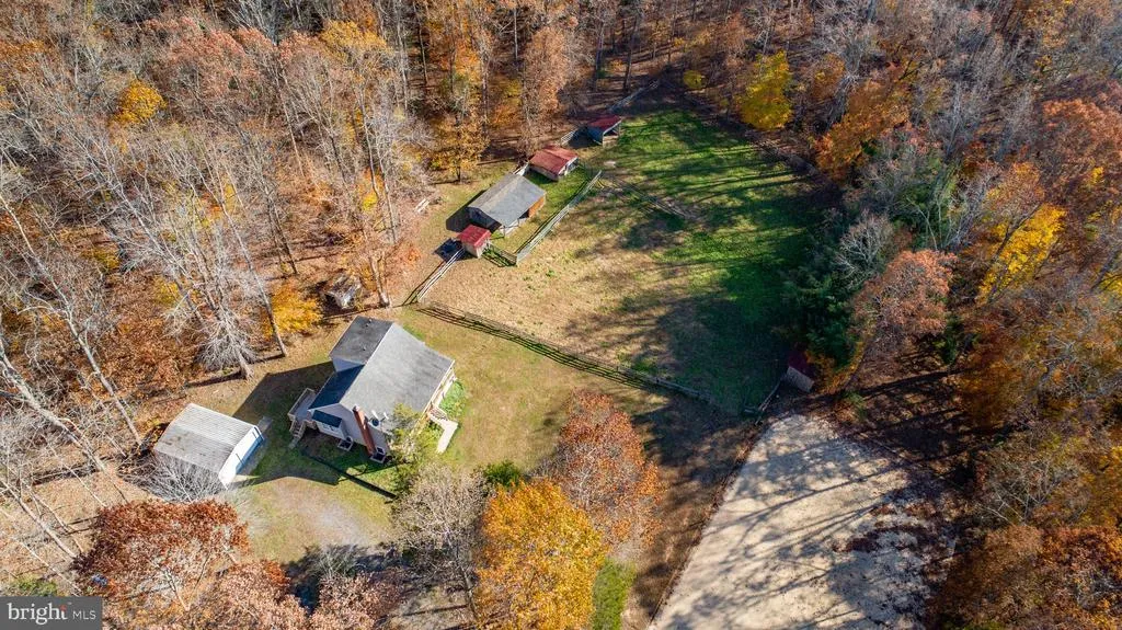 Small horse farm - 5 acres with a two stall 10x10 matted barn, chicken coop, 2 run-in sheds, 2 hay storage buildings, arena, and cross fenced paddocks. The cape cod is very open design with cathedral ceilings on the main lving area. Open kitchen, dining area and great room with gas/propane free standing stove. Main floor features 2 bedrooms with walk-in closet, large walk-in pantry closet and full bath. The primary bedroom is very private and is located on the upper level with a big walk-in closet and full bath with tub and separate shower. And there is more - the basement has 2 finished rooms and another full bath PLUS more space for finished rooms. PLUS 2 car detached garage.You will love sitting on the front porch overlooking the arena and your horses in the fenced paddocks. Loads of privacy with woods in the front, back and both sides of the 5 acres.