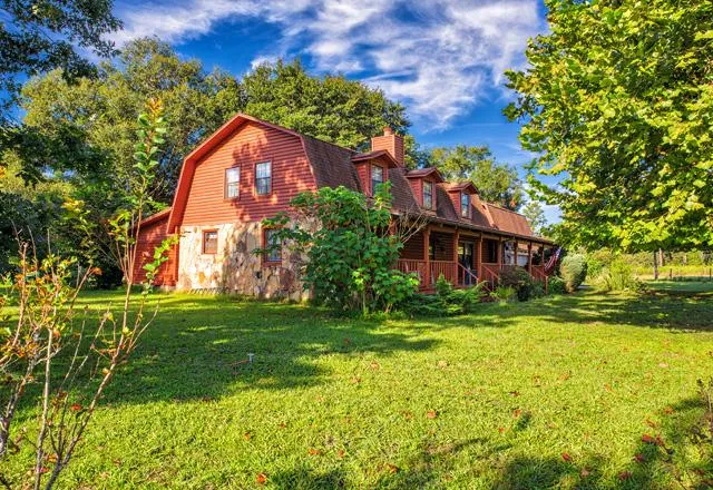 GORGEOUS LOG CABIN - This two story 4BR/2.5BA cabin will take your breath away! The wood details throughout this home are stunning! The stone fireplace, exposed wood beams, and the antique stove are just some of the many highlights in this home. Sitting on 5 quiet and secluded acres, with room for your animals, a garden, and the kids to play! Upstairs of the home feature two large bedrooms and a sitting area looking over the living room below. Spacious Master bedroom downstairs with private bathroom. Above the garage, a separate office/studio. Outside, enjoy the country views siting the in swing on the front porch that spans the distance of the home. Scattered trees provide shade throughout the day. Located just minutes from Trenton.